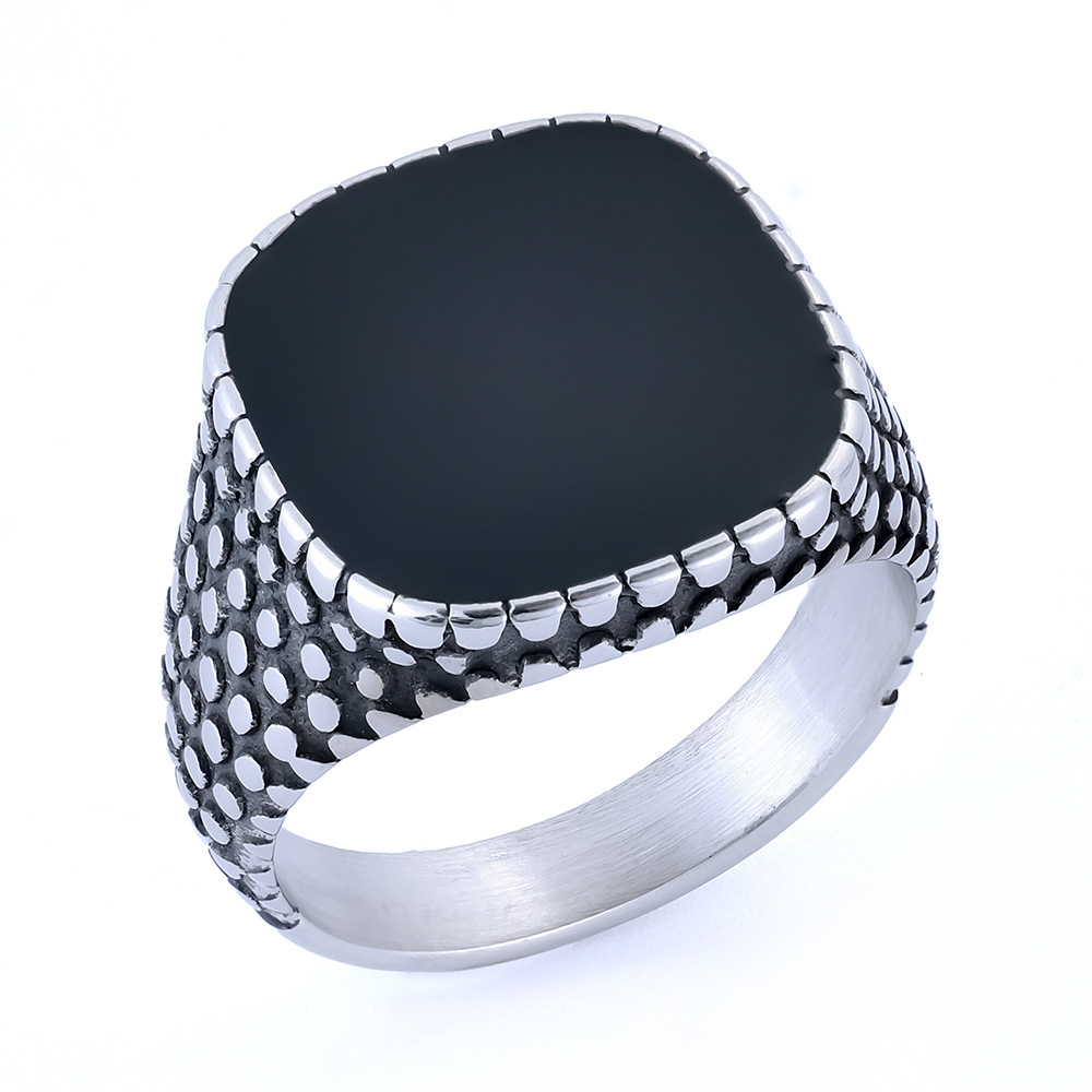 Trendy Black and Silver Contrast Ring, Polka Dot Texture Design, Hemp Drip Resin Ring