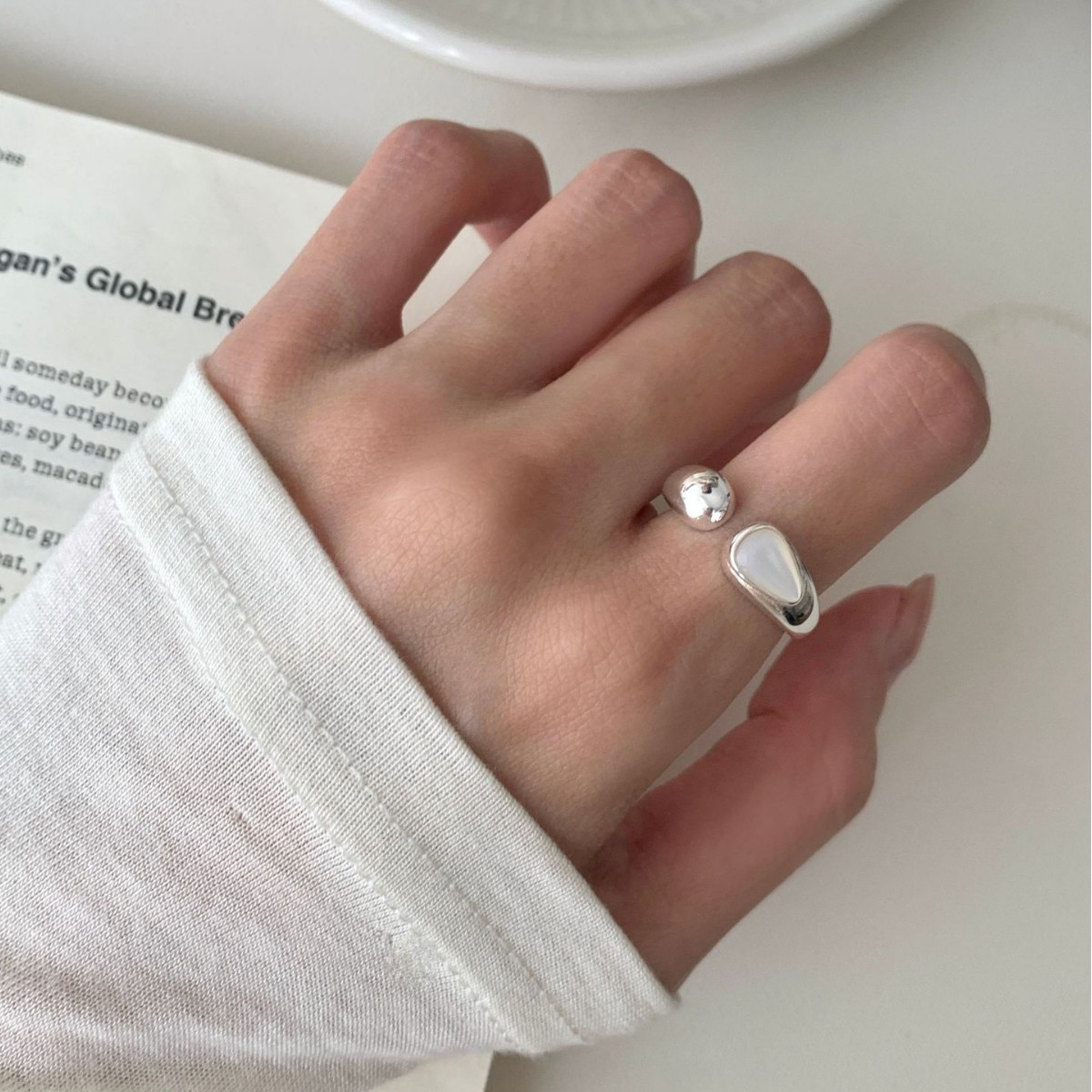 S925 Sterling Silver Asymmetrical White Shell Ring for Women Korean Ins Style High-End Niche Design Little Red Book Ring
