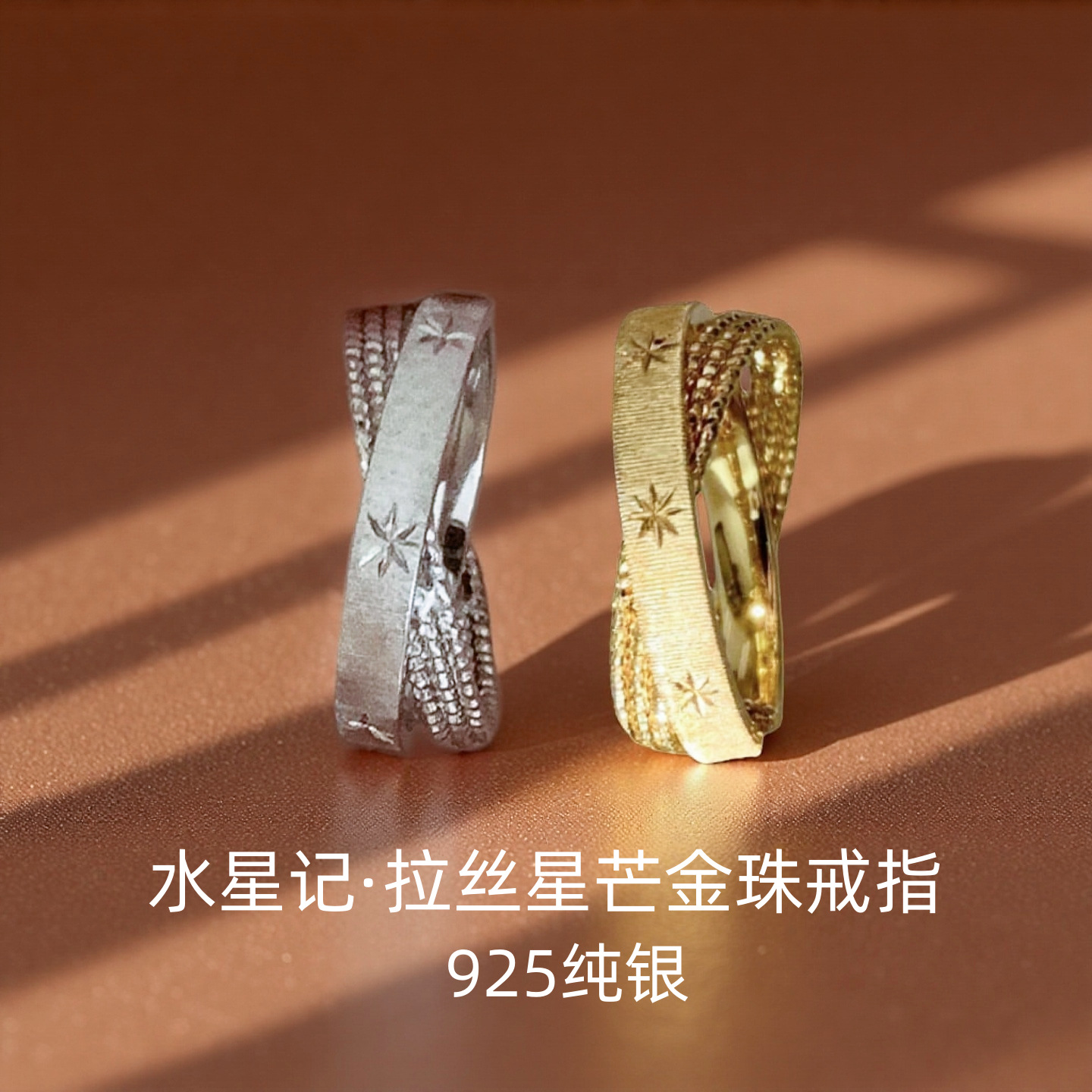 925 Silver Mercury Mark Small Double Ring Brushed Gold Bead Star Ring Women's Accessible Luxury High-End Mid-Century Style Retro Jewelry