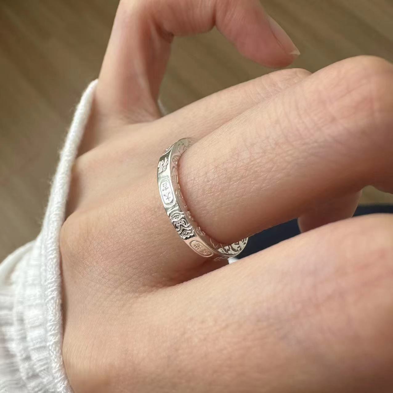 999 Pure Silver Fortune-Attracting and Blessing Ring for Women, Simple New Chinese Style National Trend Design Open Ring 0119B