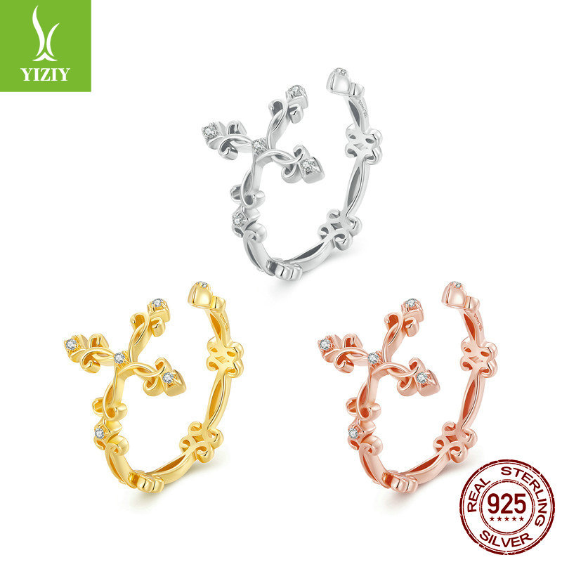 Cross-Border Hot-Selling Vine Cross Ring Opening for Men and Women European and American Retro Wind Electroplated S925 Silver Ring Bracelet