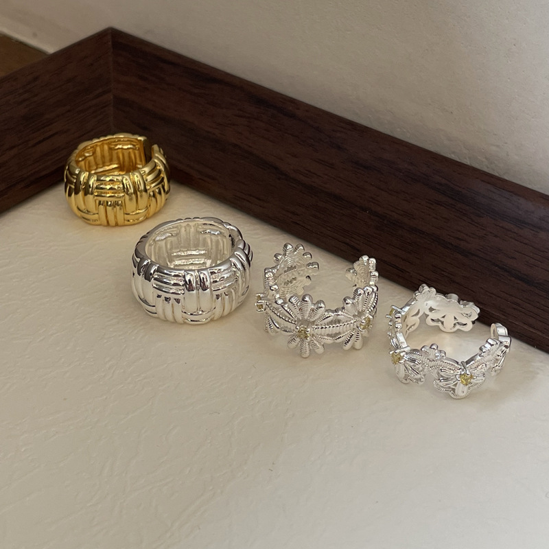 Chic Style Fashion Simple Versatile Personality Jewelry Cross Weave Texture Niche Design Copper Thick Silver Plated Ring