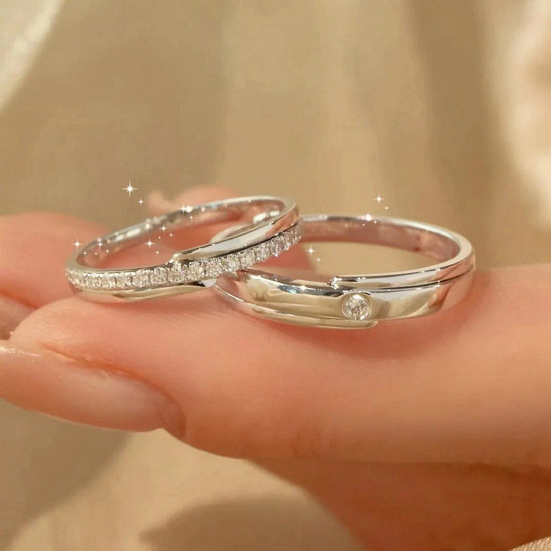 Original New Style Accompanying Couple Rings for Men and Women, Sterling Silver Pair Rings, Simple, Light and Luxurious, Versatile Opening, Can Be Engraved as a Gift for Your Girlfriend