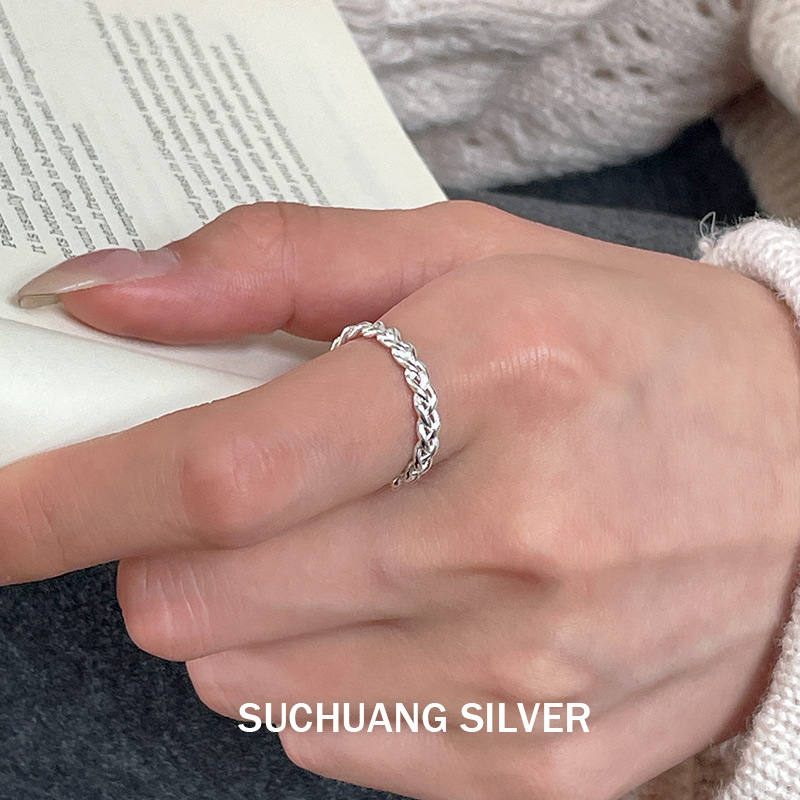 S925 Sterling Silver Twist Ring Ins High-End Simple Cold Style Plain Ring Chain Open Ring for Women