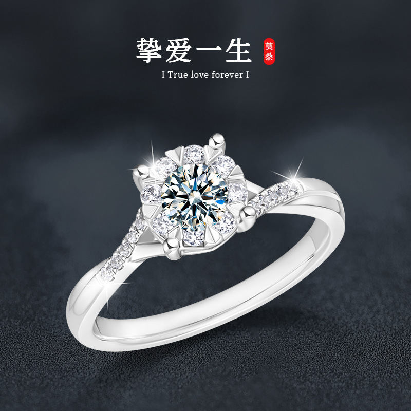 Mosang Diamond S925 Sterling Silver Ring Women's High-class Classic Four-claw Interwoven Snowflake Diamond Ring for Wedding Ring Cross-border Jewelry