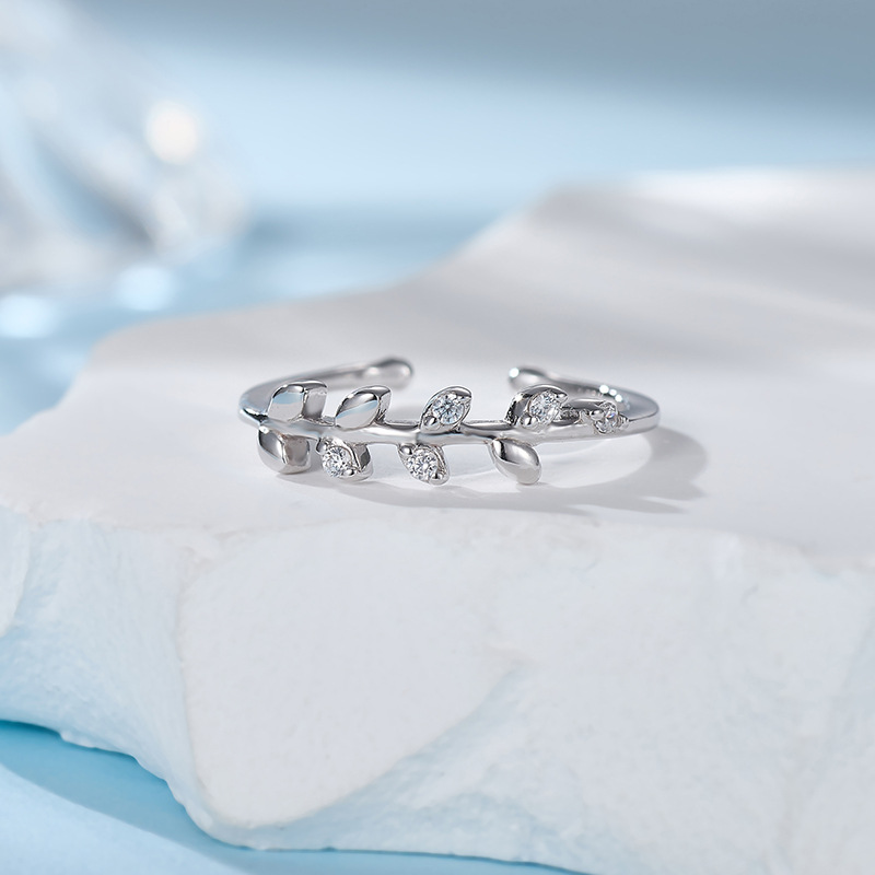 Factory Direct Sales S925 Sterling Silver Wheat Leaf Shaped Open Ring for Women Thai Silver Korean Style Niche Design Ring Jewelry