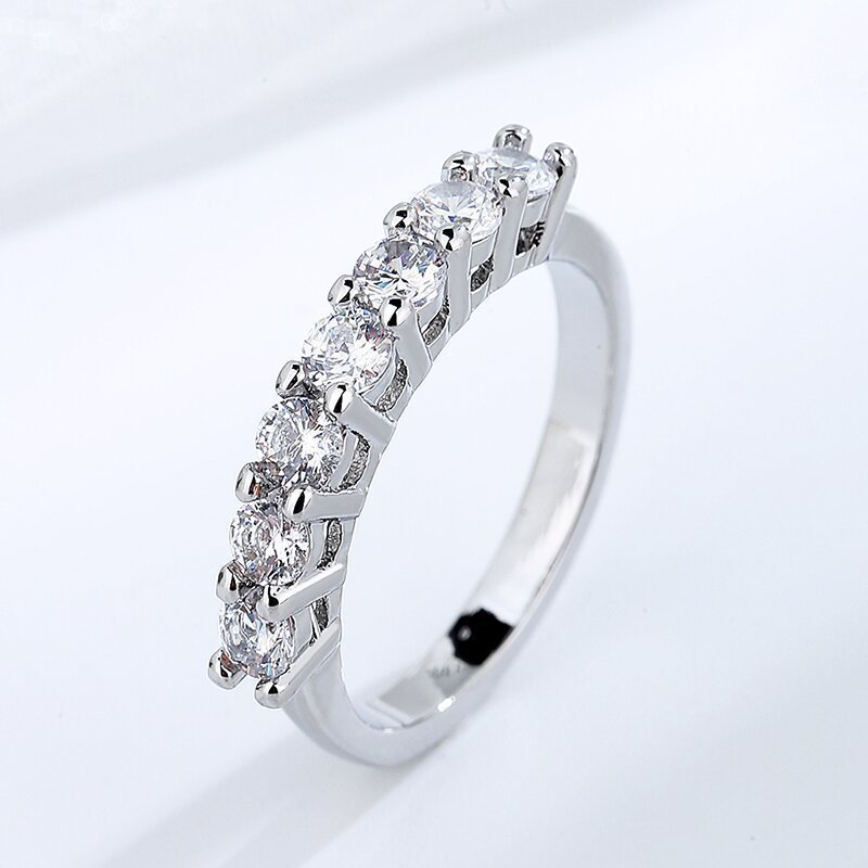 S925 Silver Ring for Women Plated with 18K Gold, Simulated Diamond Seven Princess Moissanite Ring, Straight Tail Ring Source Manufacturer