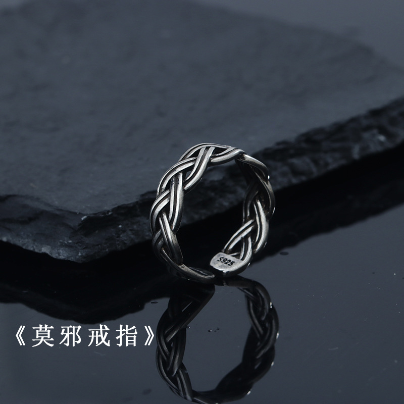 Retro Twist Ring Men's Thai Silver Personalized Trendyy Ring Men's Single Ring Fashion Braided Rope Open Ring