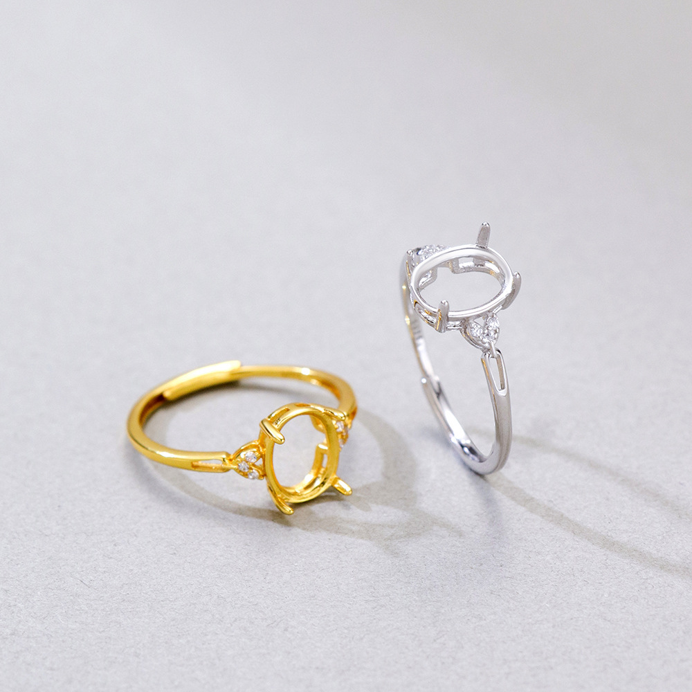 S925 Sterling Silver Plated Platinum Egg-Shaped Claw Set Ring Empty Pad Not Set Opening Adjustable Exquisite Fashion Light Luxury