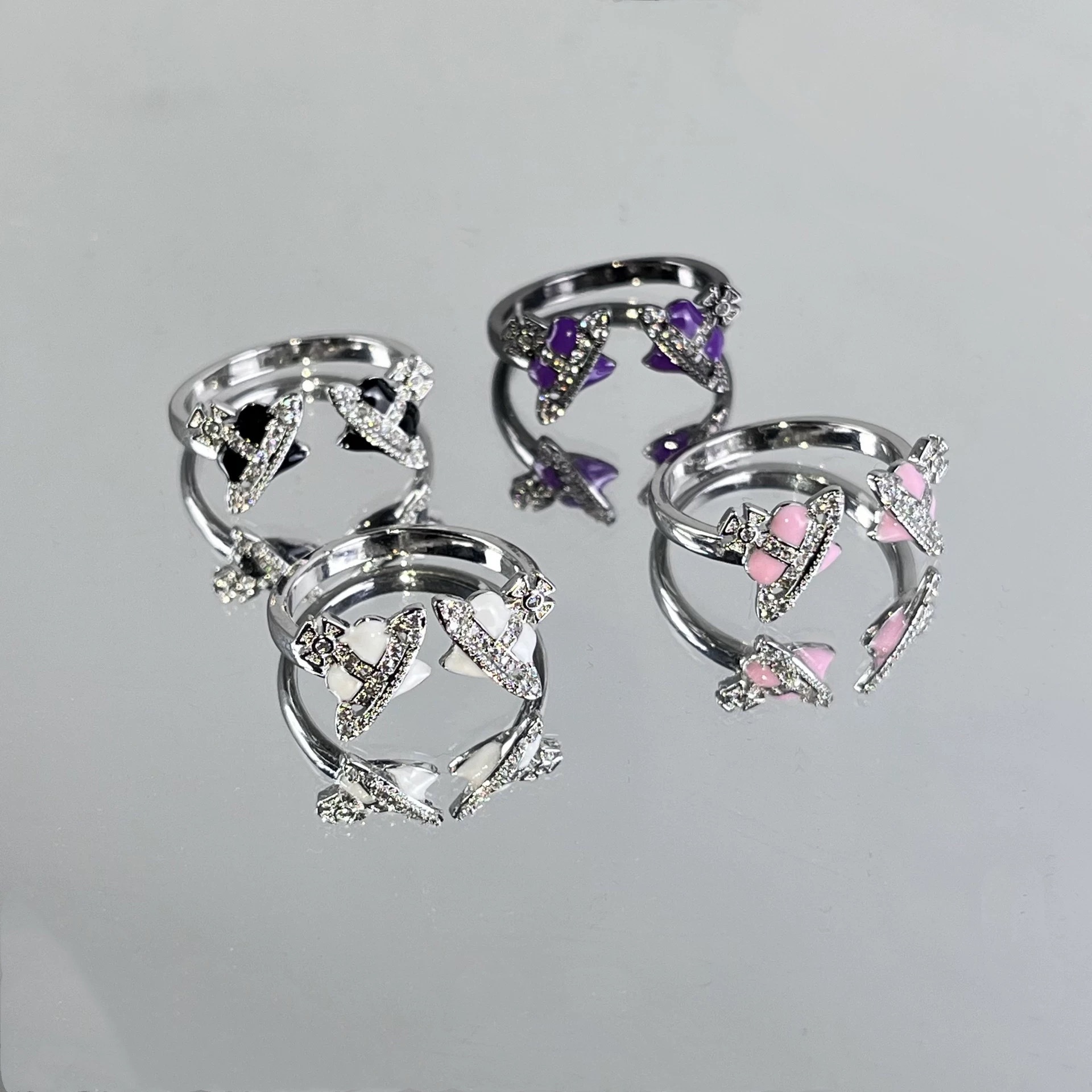 Niche High-grade Love Saturn Diamond Double Planet Ring Women's Retro European and American Personality Stacked Tide Ring Tail Ring