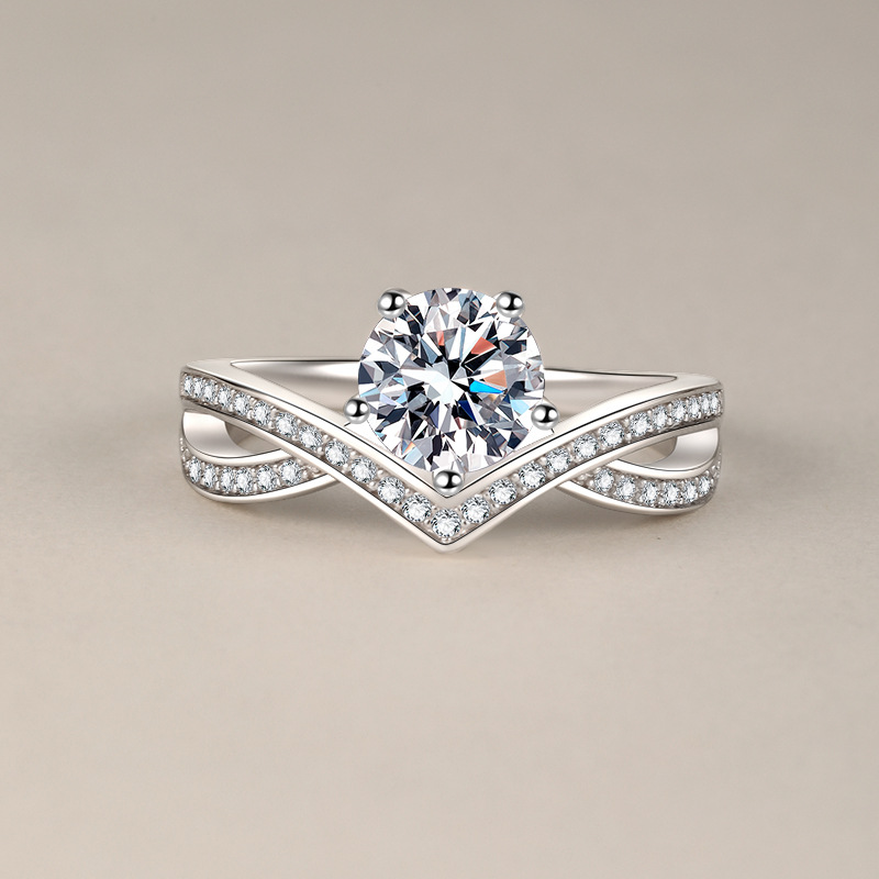 S925 Sterling Silver D Color Moissanite Diamond Ring Women's Cross Crown Ring Ins Fashion Artificial Diamond Ring Export Product