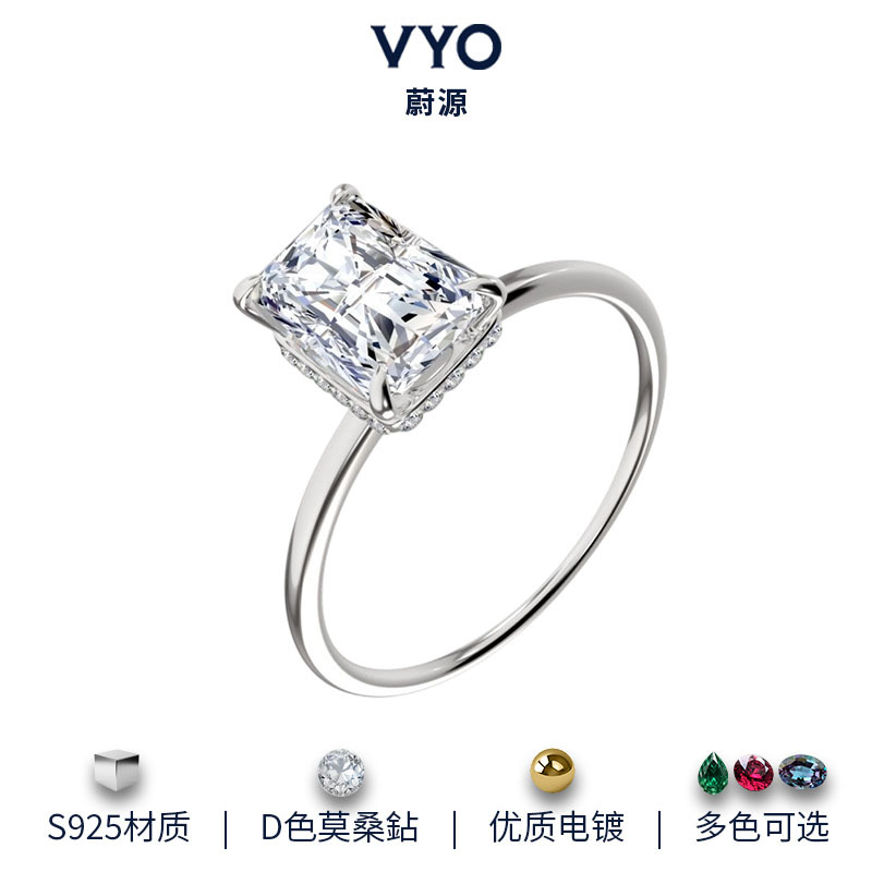 Cross-Border Wholesale S925 Sterling Silver 3 Carat Sugar Cube Moissanite Ring Women's High-End Accessible Luxury Silver Jewelry Jewelry