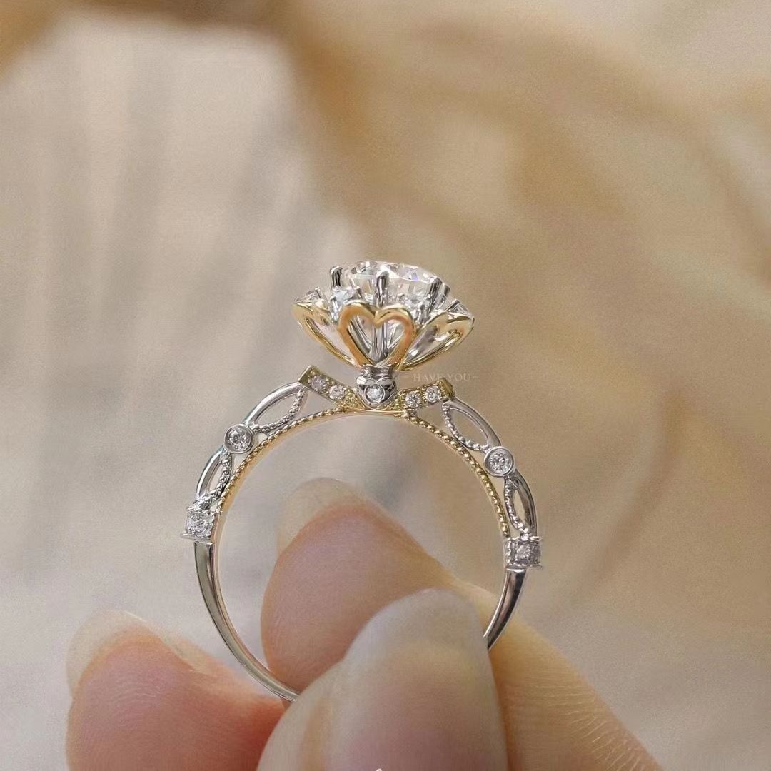 genuine goods Mosan Diamond Sweet Princess Hand Flower New Diamond Ring Double Color Sterling Silver Princess Six Claw Women's Ring Wholesale