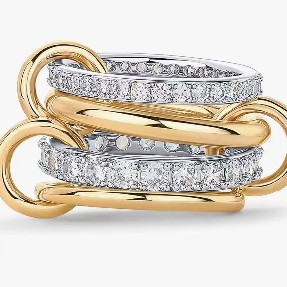 Amazon ring interlocking stacked rings, 925 silver or copper with zircon, panyu quality hand-polished