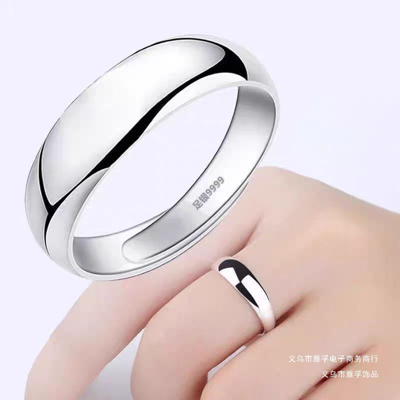 Men's Ring S999 Silver Couple Ring Pair of Pure Silver Ring Women's Silver Glossy Open Trendy Ring Birthday Gift