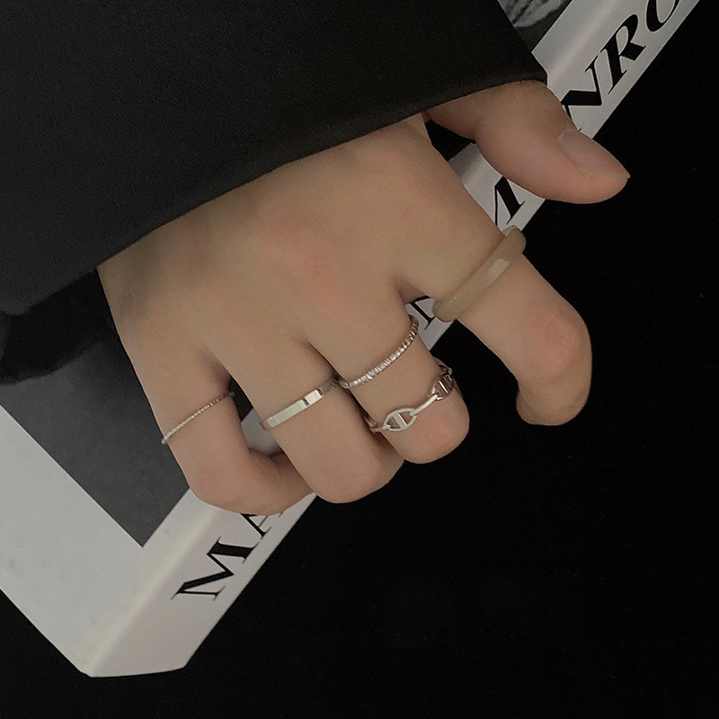 Silver Color Ring Combination Ring Women's ins Trendy Simple Cold Style Finger Ring Fashion Internet Celebrity Personalized Ring