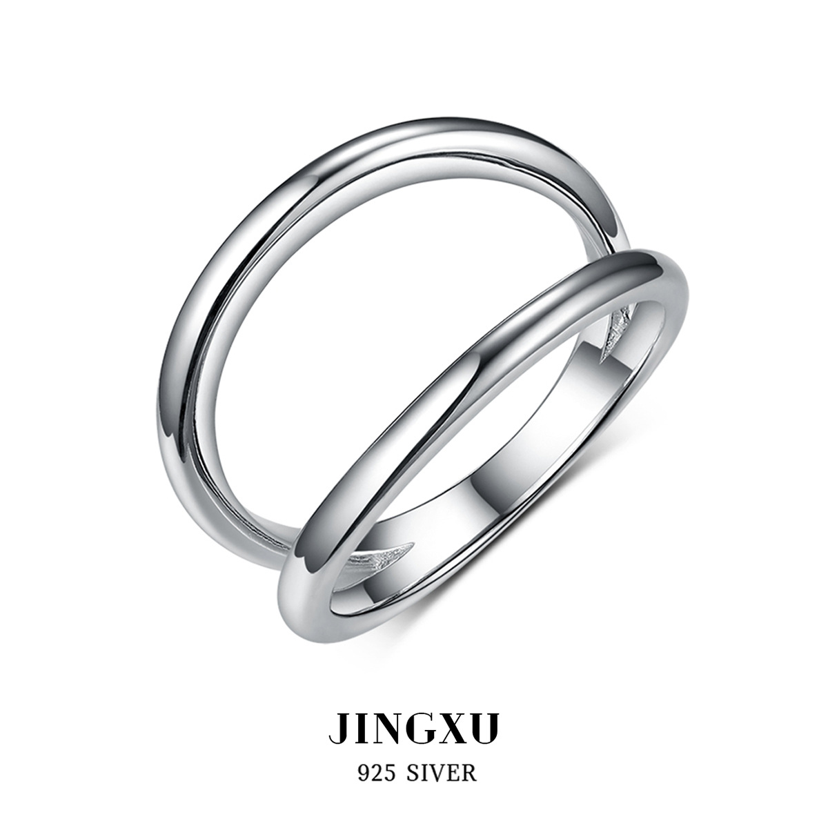 925 Silver Ring Double-Layer Geometric Simple Ring Ins Niche High-End Sterling Silver Ring Women's Non-Fading Hand Jewelry
