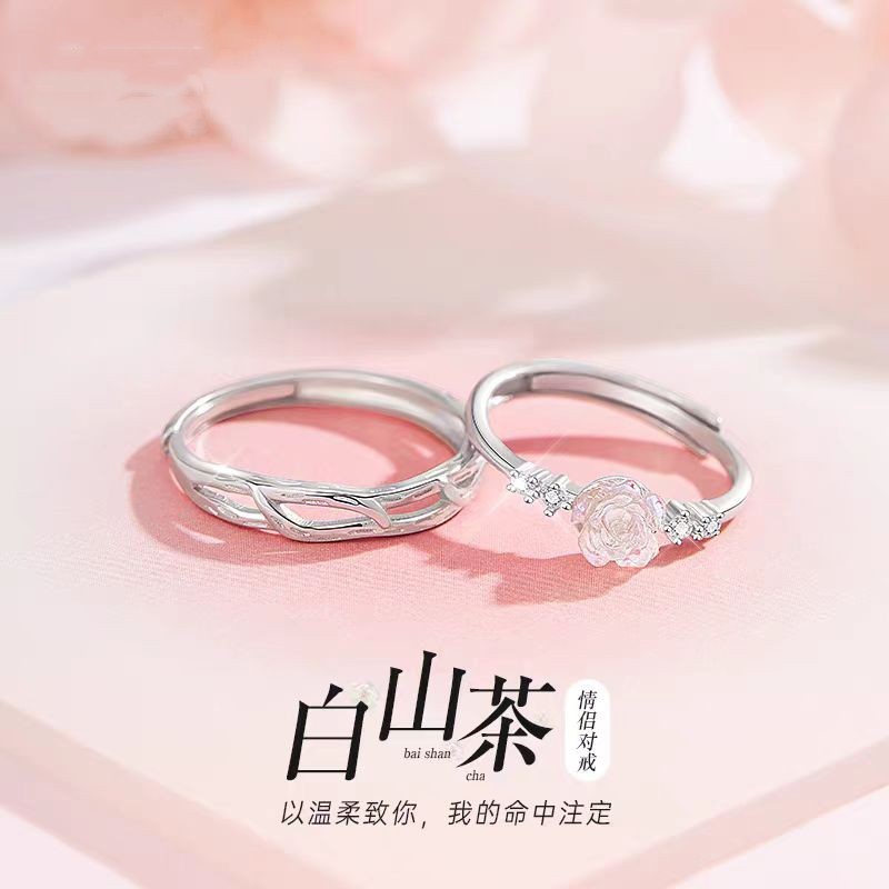 Camellia 999 Sterling Silver Couple Ring A Pair of Rings Niche Design Love Letter 520 Gift for Girlfriend