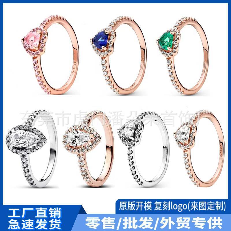 Panjia white copper S925 silver ring shining heart of joy diamond rose gold pink love ring ring wholesale