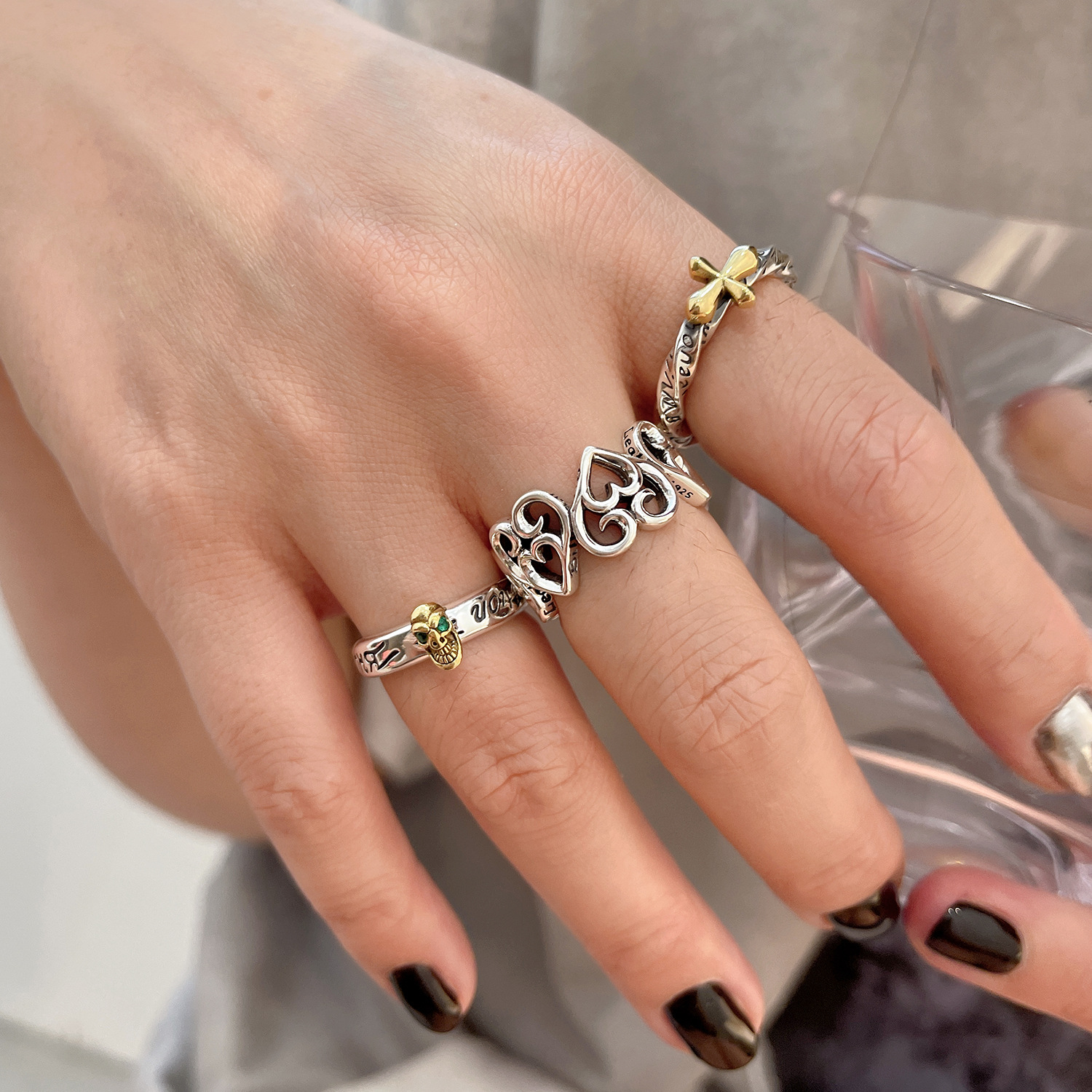 s925 Sterling Silver Graffiti Love Cross Twisted English Alphabet Ring Vintage Distressed Didi Fashion Ring