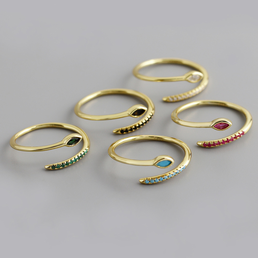 Jz1062 Cross-Border Inlaid Colorful Zircon High-End S925 Sterling Silver Adjustable Ring Fashion Versatile Open Ring for Women