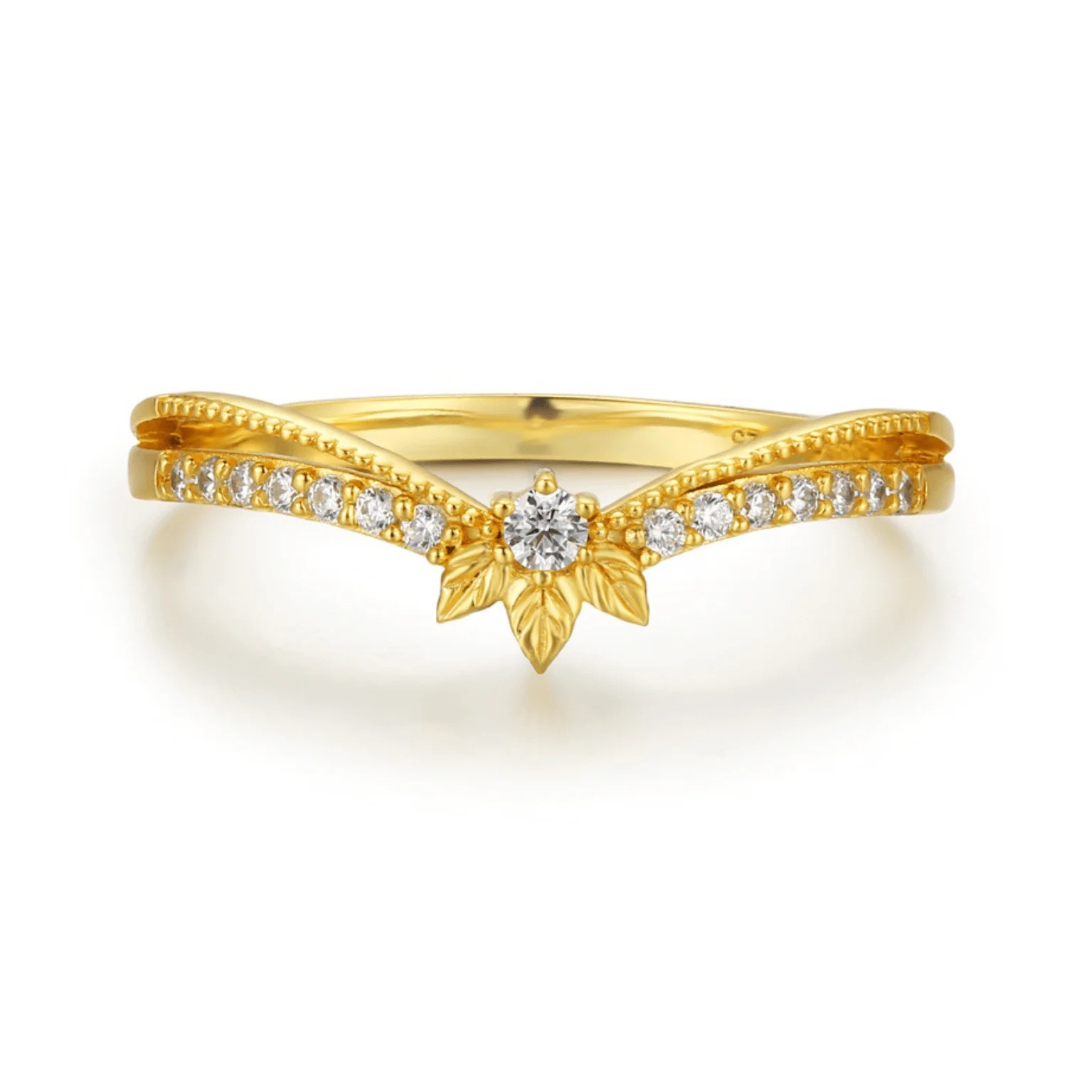 Cross-Border Hot-Selling S925 Sterling Silver Ring for Women, Elegant Elegant, Leaf Herringbone Full Diamond Design, Niche Simple Ring