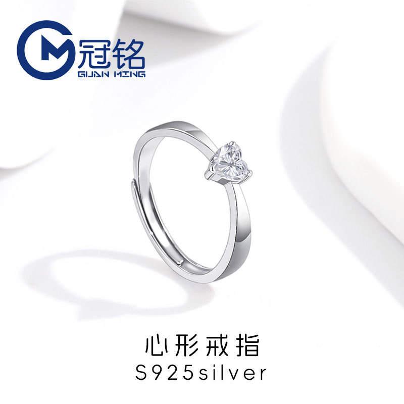 Simple Heart-Shaped Open-Ended Women's S925 Sterling Silver Princess Heart-Shaped Zircon Adjustable Ring Factory Wholesale