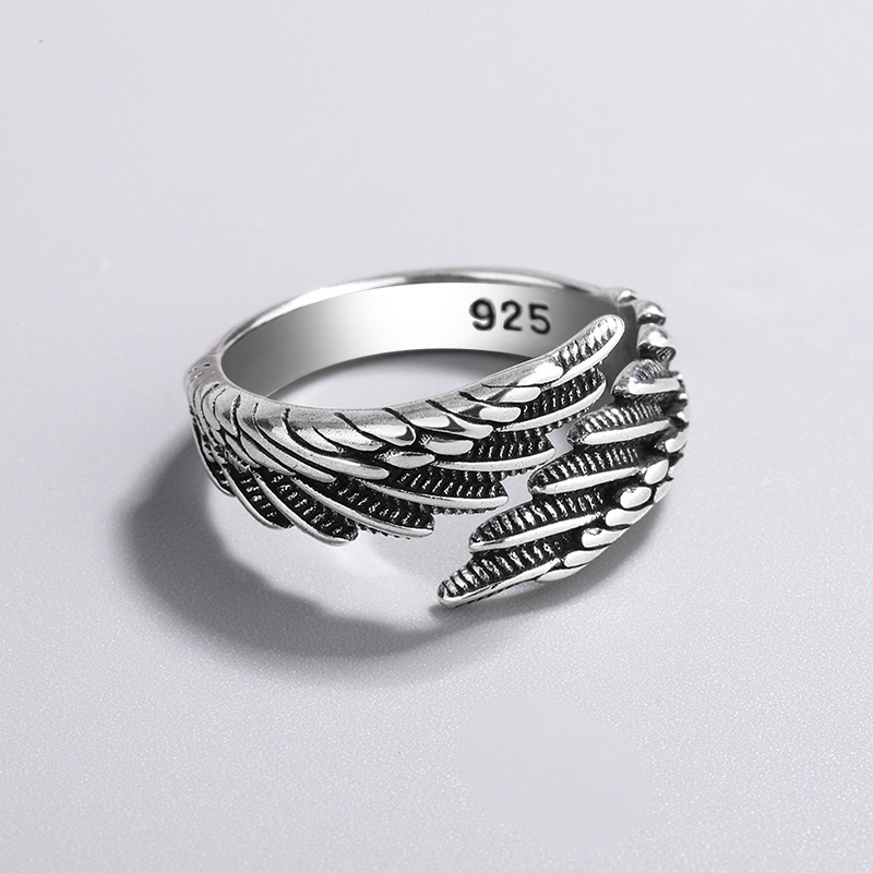 European and American Retro Old Feather Ring, Simple and Fashionable Thai Silver Jewelry, Elegant and High-End Ring