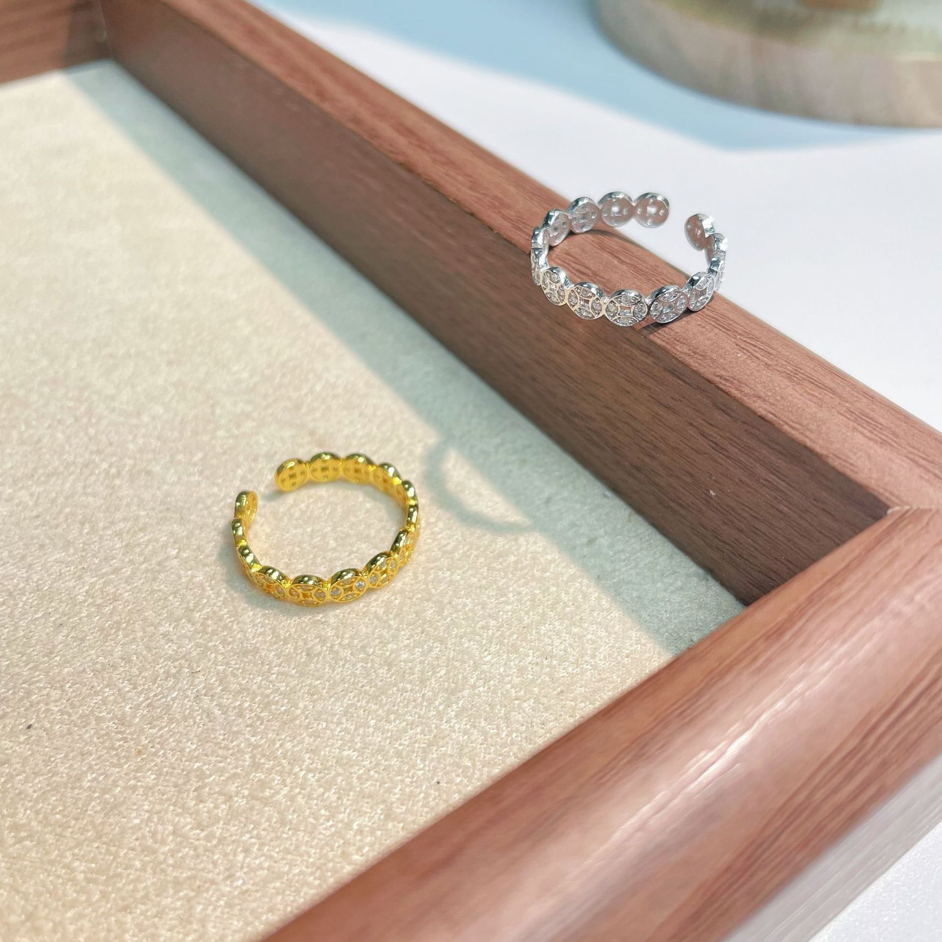 S925 Silver Zircon Coin Ring for Women, Retro Chinese Style Copper Coin Open Ring, Niche Design, Manufacturer Wholesale