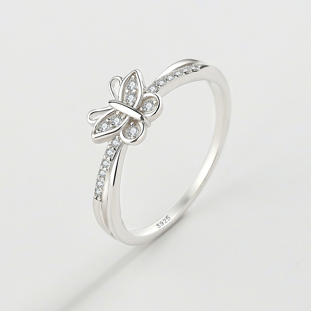 S925 Silver Diamond Butterfly Ring for Women Ins Korean Style Accessible Luxury Elegant Fashion Versatile Ring Japanese Style Style