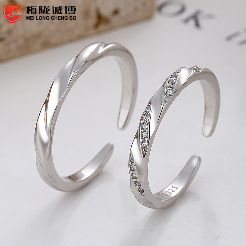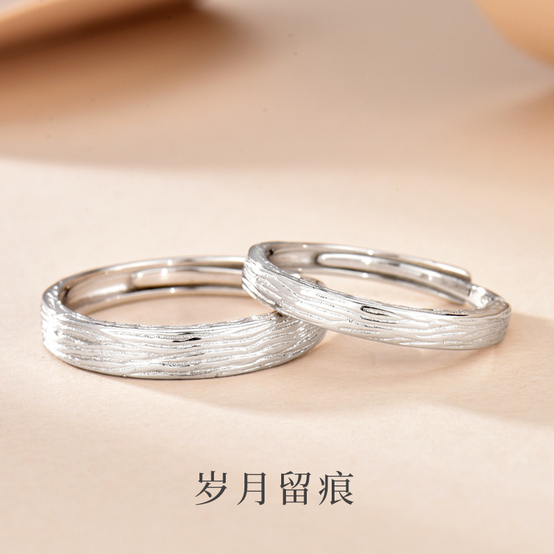 S925 Sterling Silver Years Mark Couple Ring a Pair of New Simple Niche Texture Texture Pair Ring Open Ring