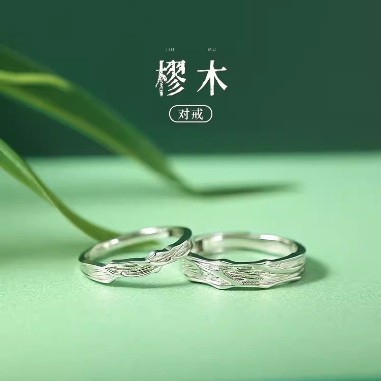 A Pair of Cypress Couple Rings S925 Sterling Silver Couple Rings Niche Design High-End Ins Style Accessible Luxury