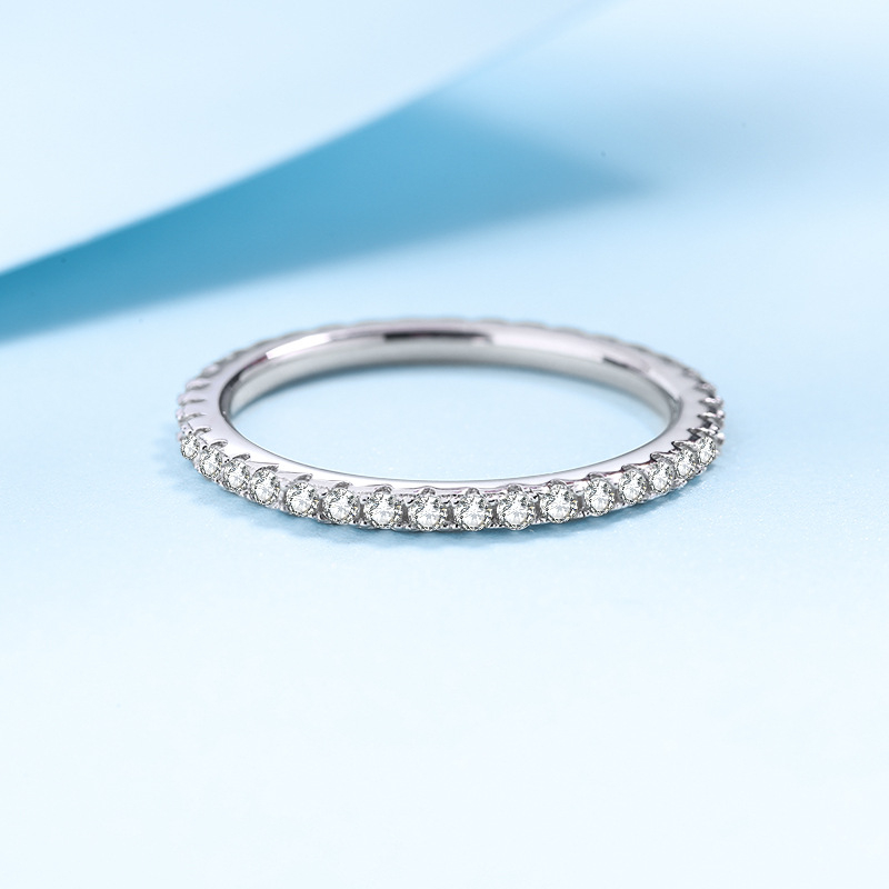 A generation of hair full circle drill S925 silver ring women plated pt950 gold moissanite simple ring Live supply