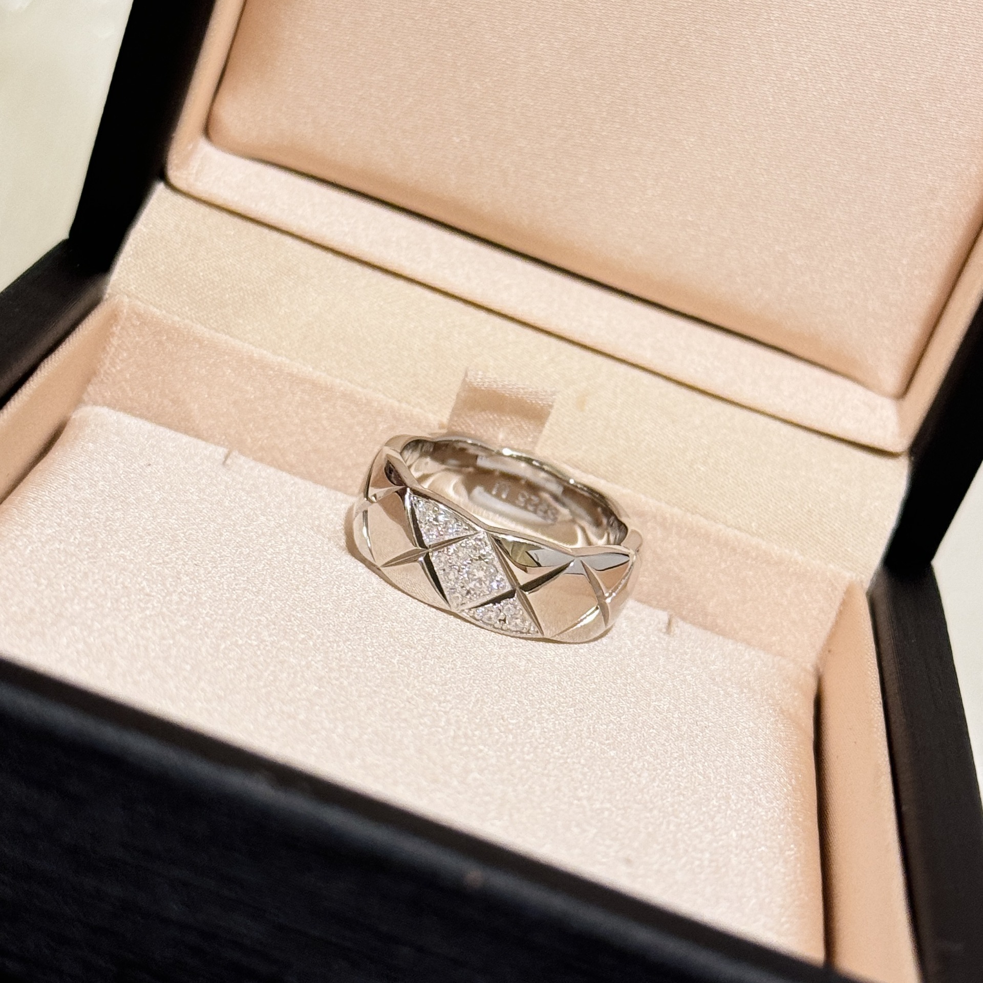 S925 Sterling Silver Oblique Bangs Quilted Ring Glossy High-End Exquisite Texture 2025 New Style