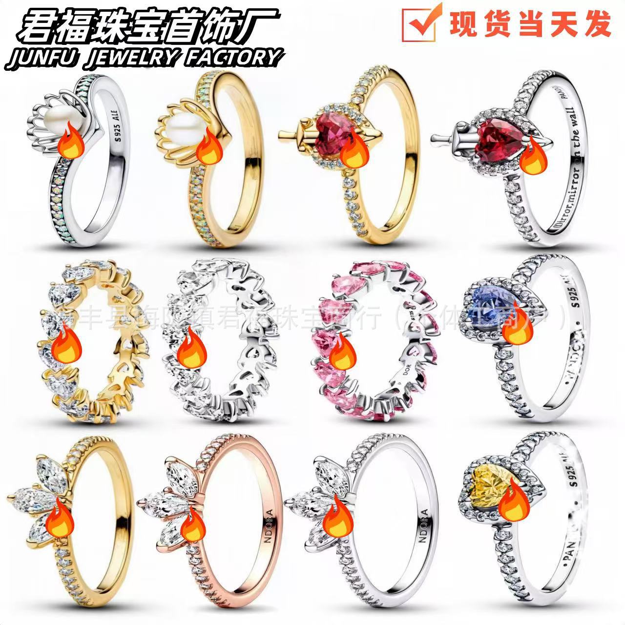 Cross-Border New Panjia White Copper Plated S925 Silver Heart Crown Pair Ring Bow Ring Women's Ring Factory Direct Sale