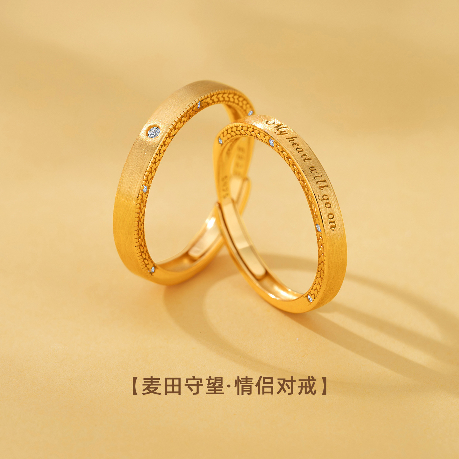 S925 Sterling Silver Wheat Field Couple Ring Simple Niche Design English Letter Opening Adjustable Ring
