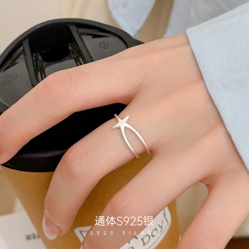 S925 Silver Matte Starfish Open Ring for Women Korean Ins New Popular Niche Star Ring Wholesale
