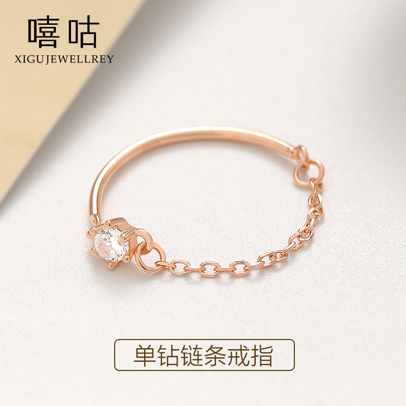 Xigu J0233 S925 silver single diamond chain ring female niche high-grade personality Super Flash zircon index finger ring