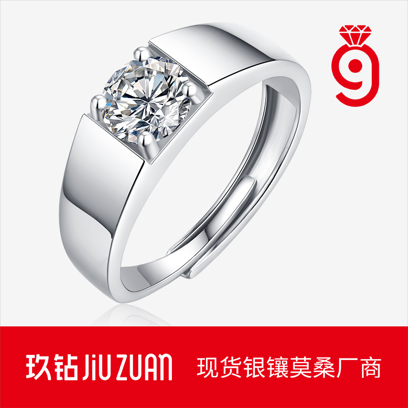 New Trendy Fashion S925 Silver Style Men's High Version Adjustable Open Ring Moissanite Ring