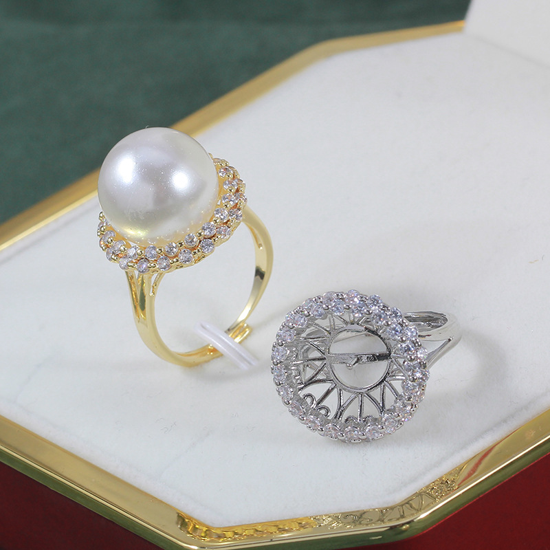 DIY Pearl Accessories Copper Gold Plated Round Zirconium Sunflower Pearl Ring Open Empty European and American Style Personalized Women