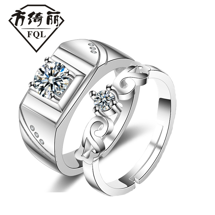 S925 silver platinum-plated pt950 classic six-claw couple ring female moissanite ring empty support one-piece delivery