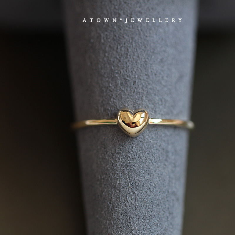 S925 Sterling Silver Plated 14K Gold Chubby Love Ring Simple All-match Super Cute Heart Ring