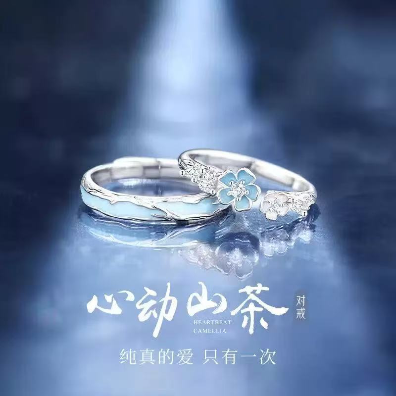 Pure Silver 999 Heart-Warming Camellia Couple Ring for Women and Men, Accessible Luxury Niche Design Pair of Rings, Valentine's Day Gift