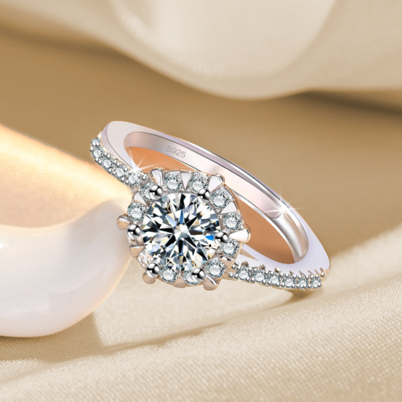 Cross-Border Best-Selling S925 Sterling Silver Ring for Women, Moissanite Diamond Ring, One Carat Live Star Woven Twisted Arm Bracelet, Live Broadcast Goods