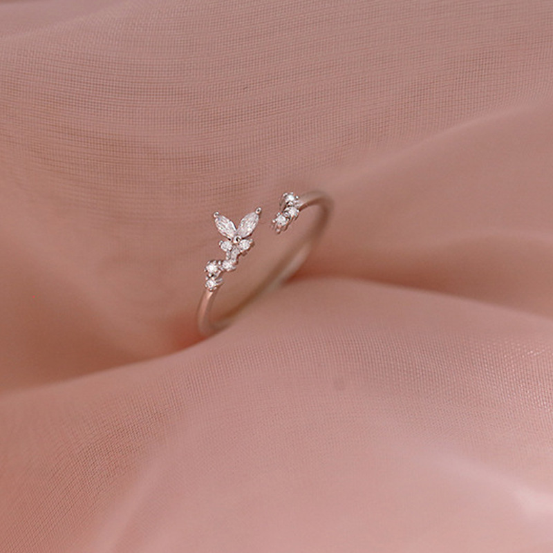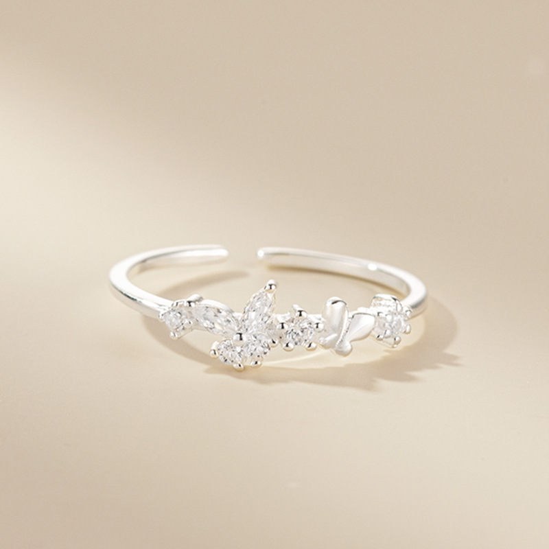 Fangxing S925 Sterling Silver Butterfly Ring Niche Design Sense Light Luxury Fashion High Sense Tail Ring Opening Ring Finger Ring