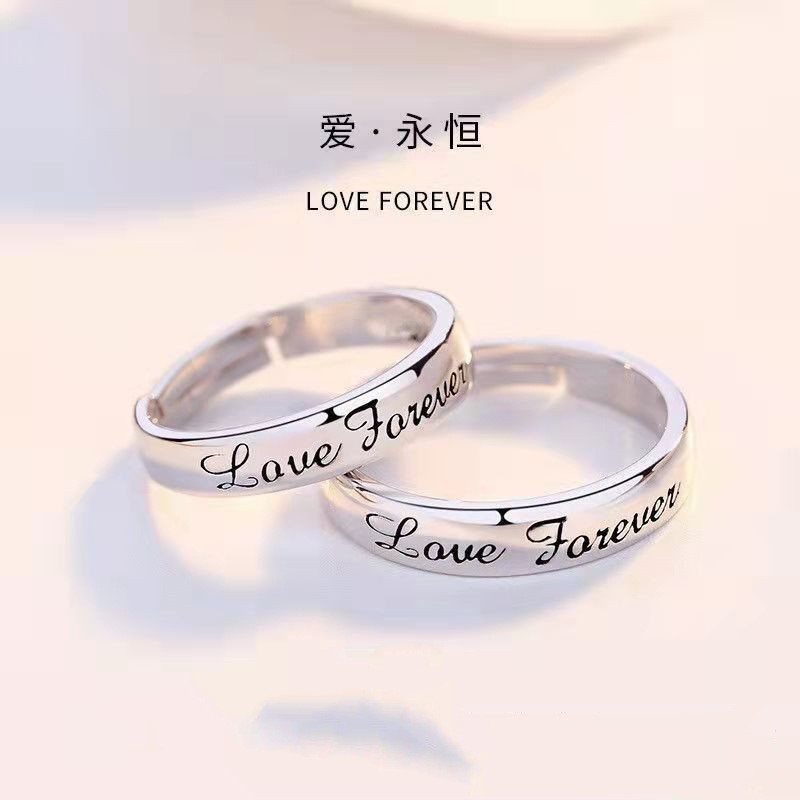 Korean Couple's Ring Engraving Fashion Silver Ring Opening Adjustable Niche Simple Student Ring Jewelry