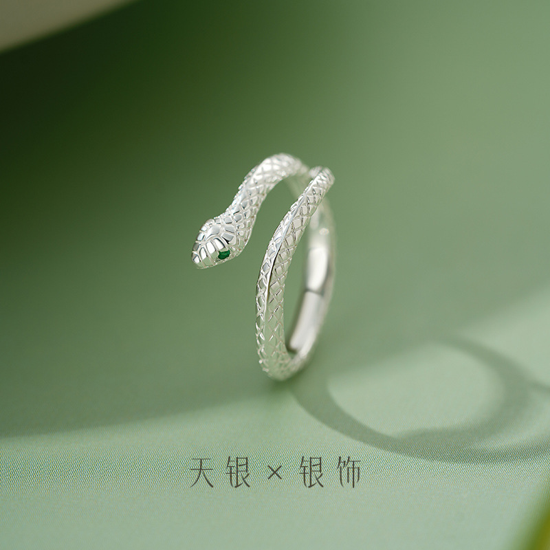 S999 Pure Silver New Chinese Style Spirit Snake Ring Women's National Style Light Luxury Zodiac Zodiac High-End Ring Dropshipping