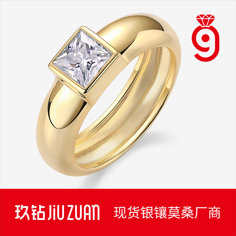 S925 Silver 1 Carat Moissanite Ring Women's Niche High-End Ins Style Gold All-Over Silver Jewelry Wholesale