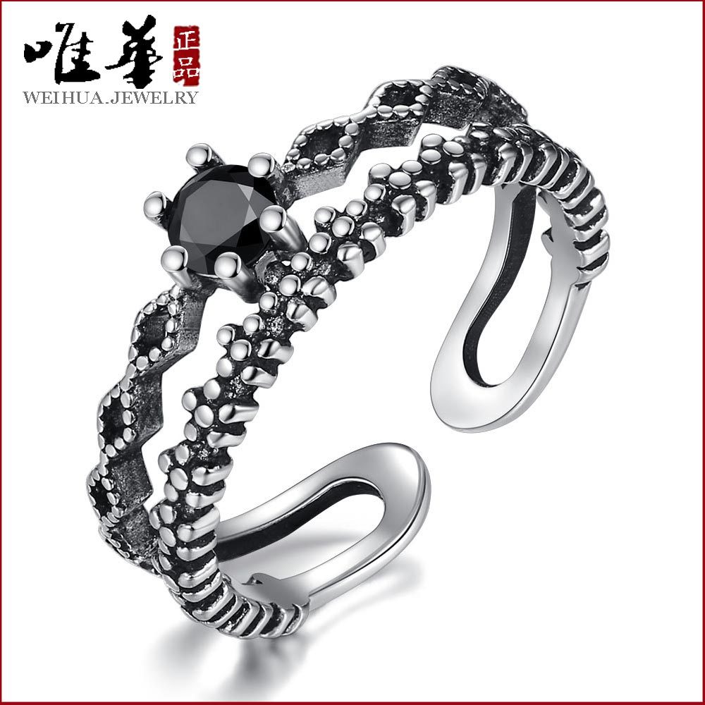 Wushan Canghai Sterling Silver Ring Couple's Niche Design Sense Engraving Good Thing Adjustable Opening Ring