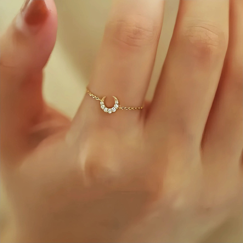 S925 Sterling Silver Plated 14K Small and Exquisite Gold Moon Chain Soft Ring for Women Adjustable Ins Trendy Fashion Versatile Style